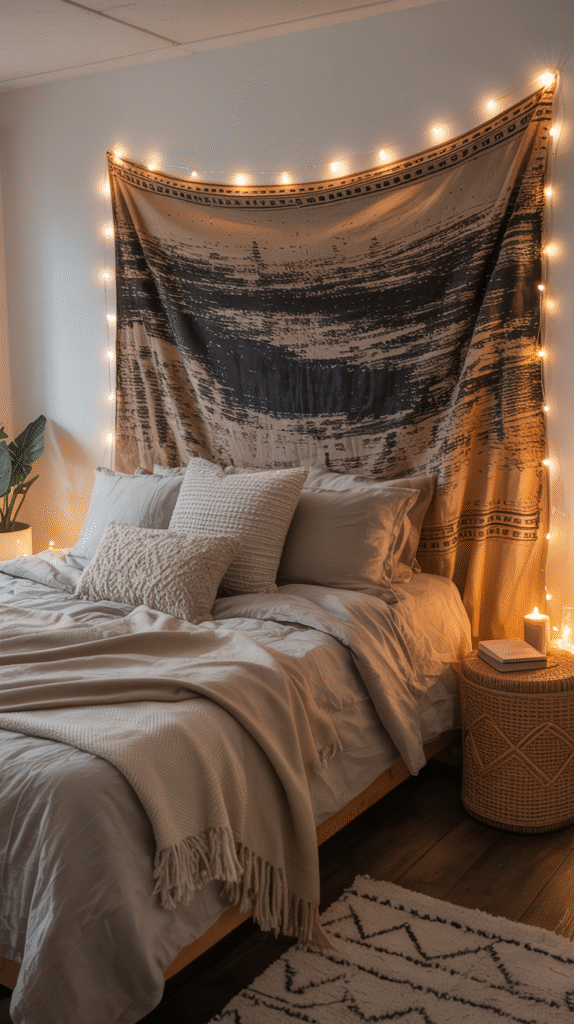 In my experience, a good tapestry sets the mood instantly. Go for boho patterns if you want a cozy, warm look, or abstract prints if your vibe is more modern and artsy.