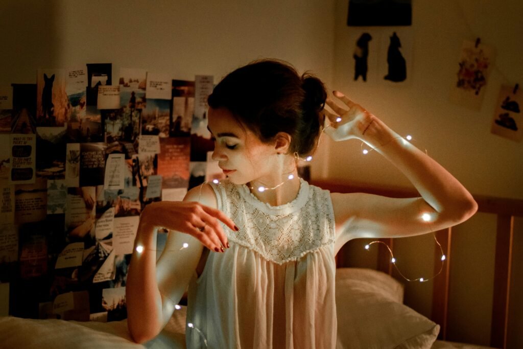 Now let’s talk about lighting, because lighting can make or break your dorm’s entire mood. Harsh overhead bulbs? No thanks. Soft glowy lights? Yes, please.
