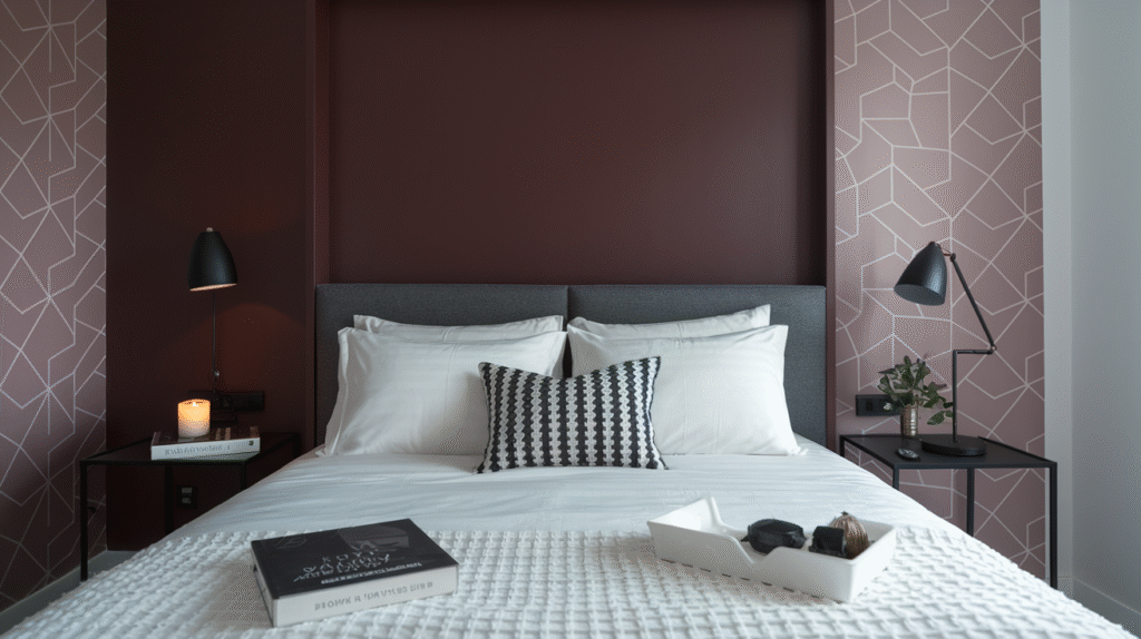 Think of it this way: a rich pink wall behind your bed instantly turns it into the room’s centerpiece. Pair that with white bedding and sleek black side tables, and suddenly, you’ve got a space that looks like it belongs in a design magazine.