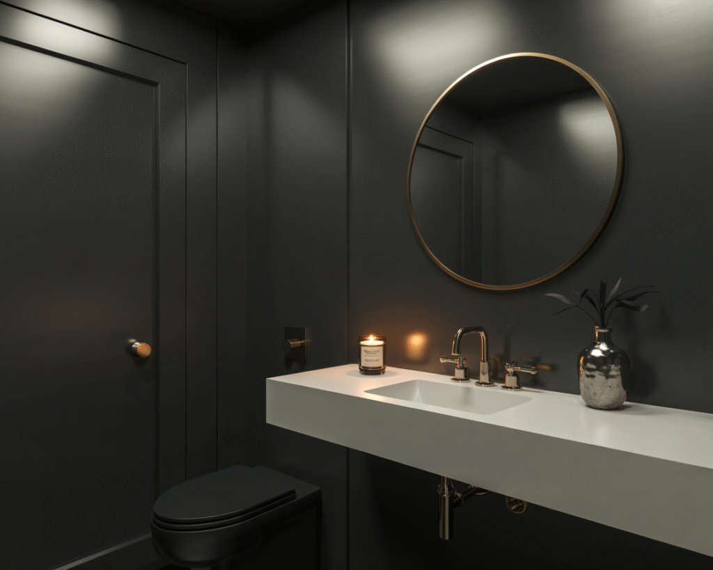 I know what you’re thinking: “Isn’t black going to make my tiny powder room feel like a shoebox?” In my experience, the opposite usually happens. Black adds depth, creates mood, and makes a small room feel intentional instead of cramped.