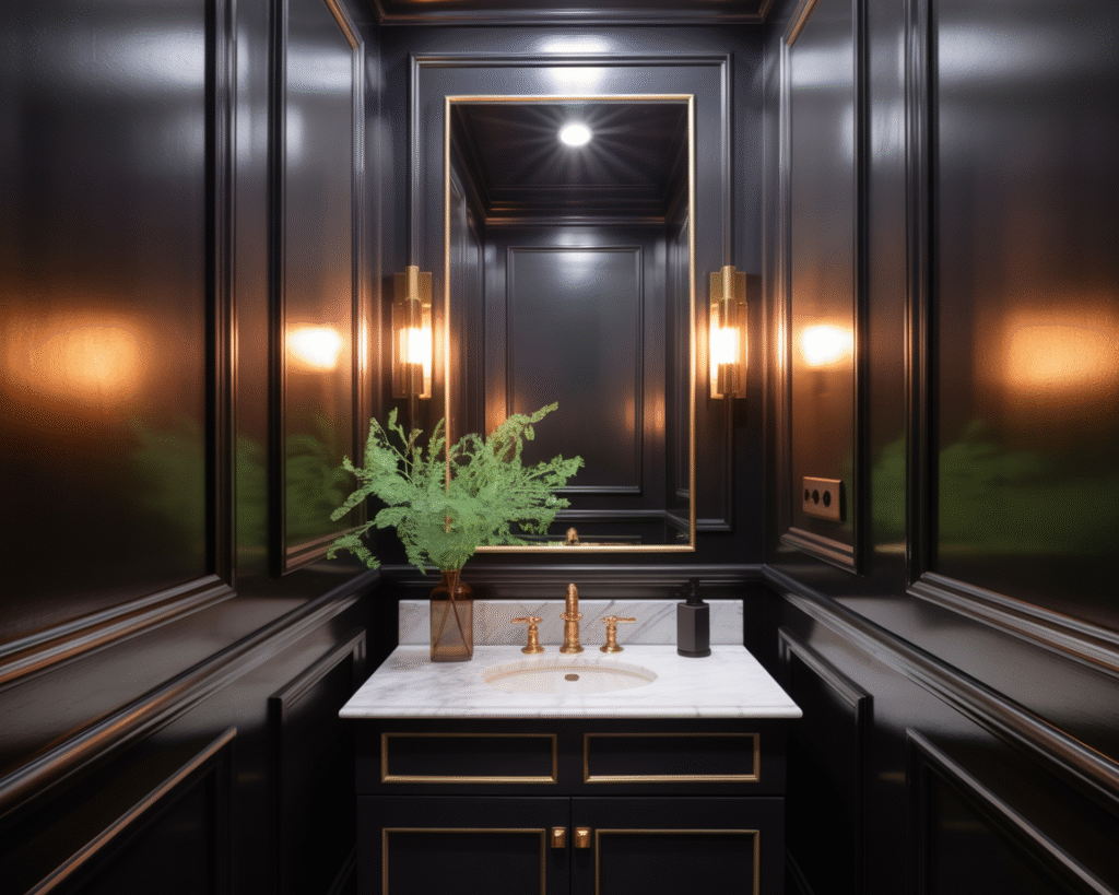 - “It’ll shrink the space.” Nope. Done right, a black powder room actually creates depth and makes walls recede.