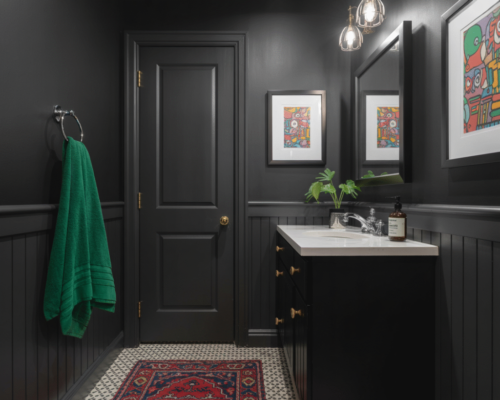 I styled a black powder room once with emerald green towels and a bright red rug. Sounds crazy, right? But against the black backdrop, the colors looked curated, not chaotic.