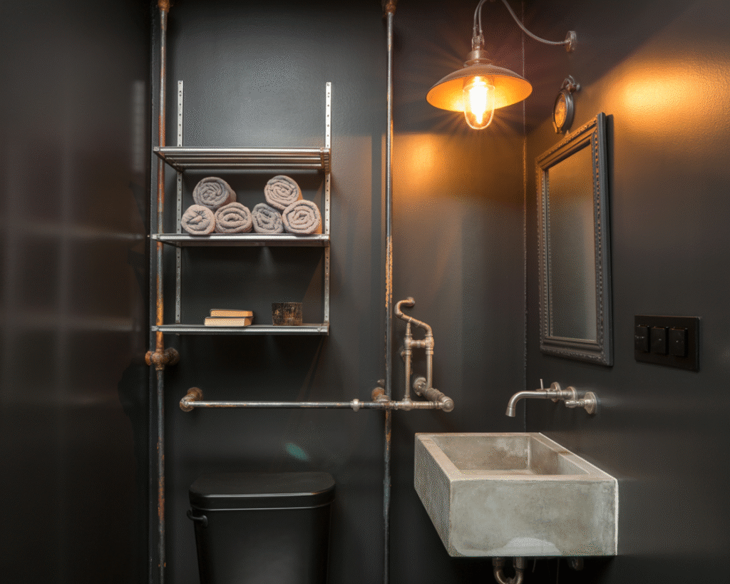 Want something edgy? Try an industrial vibe. Think concrete sinks, matte black pipes, and exposed brick. I’ve styled a few like this, and they always give off that effortlessly cool, loft-style feel.