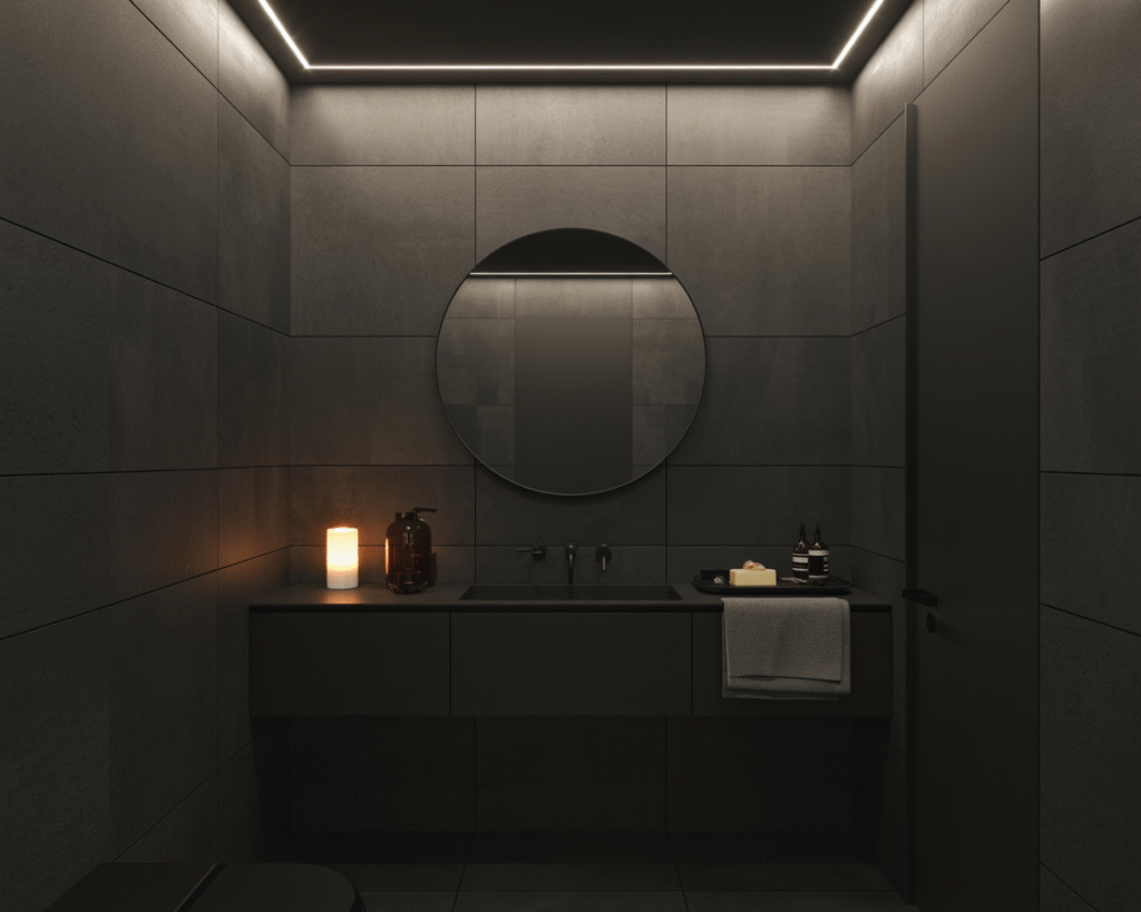 I once designed one with matte black walls, a black floating vanity, and a round black mirror. It was unapologetically bold—and it worked beautifully.