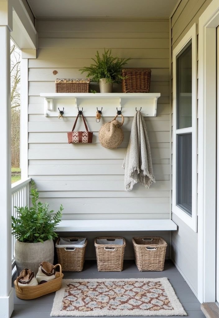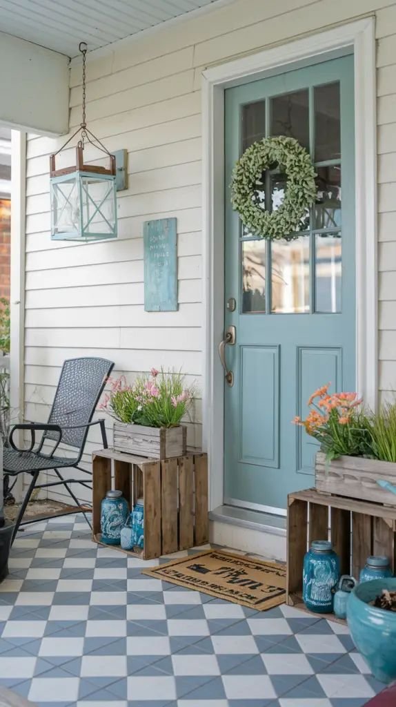 Small front porch ideas fail when people only think horizontally. Walls, ceilings, and door frames offer design opportunities. Use them.