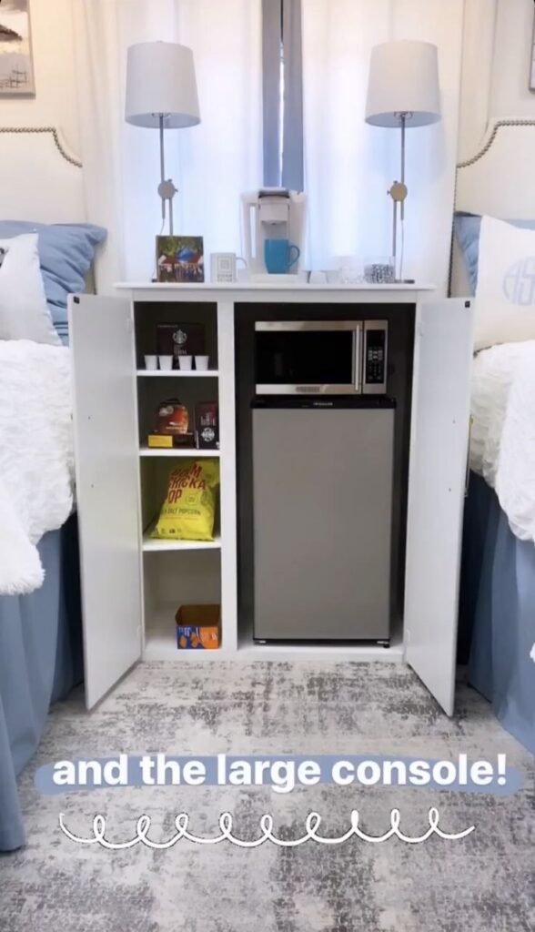 A rolling cart is one of my favorite Dorm Kitchen Ideas. It provides additional counter space and storage without permanent installation. I like using mine to store snacks, utensils, and even a small coffee station. The mobility is what makes it amazing—you can move it out of the way when you need the floor space or bring it closer when prepping meals.