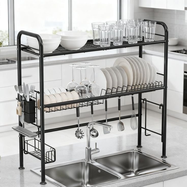 Over-the-sink shelves take advantage of often-wasted space. They create a small area for drying dishes or holding essentials like soap and sponges. I love using them because they free up counter space while keeping everything you need within reach.