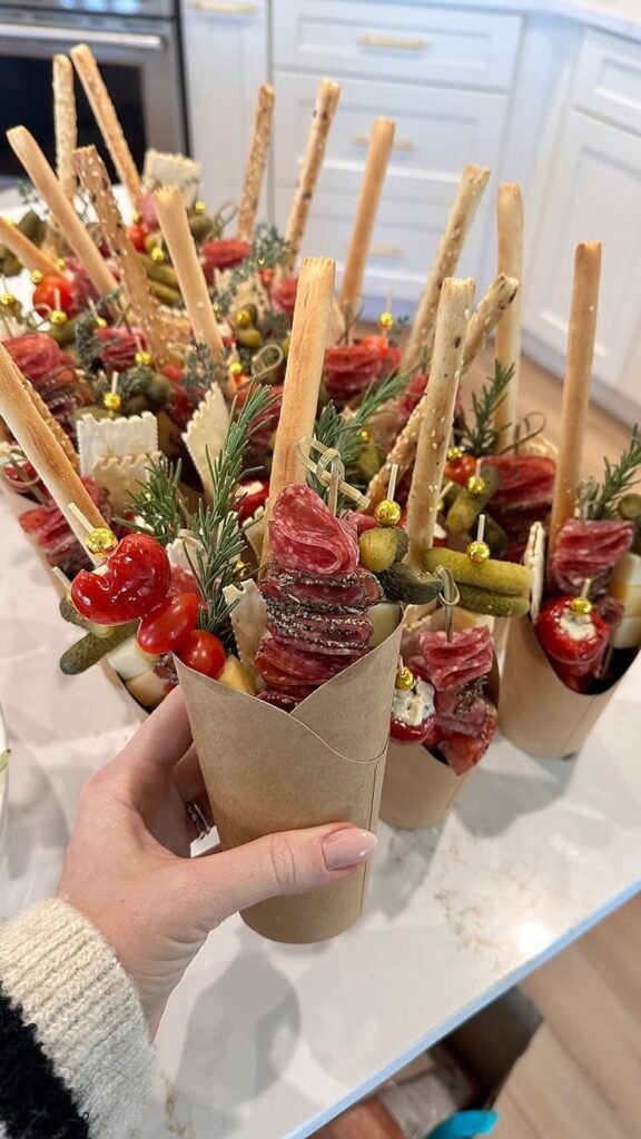 Charcuterie cups shine at casual parties. Guests grab one, mingle freely, and snack without hovering near a table. I’ve used them for birthdays, backyard BBQs, and game nights, and they never fail.