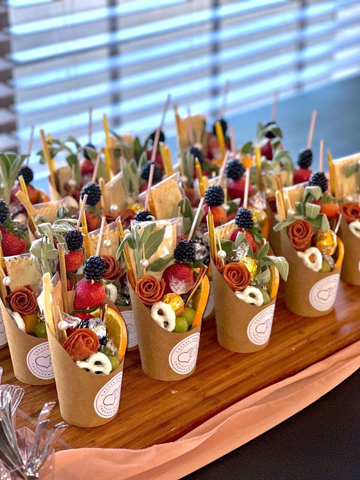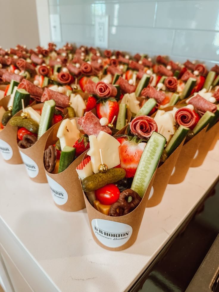 Event planners love charcuterie cup ideas because they look upscale without the hassle. They fit beautifully on dessert tables, cocktail stations, or welcome spreads.
