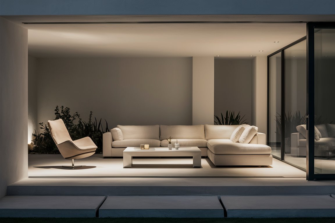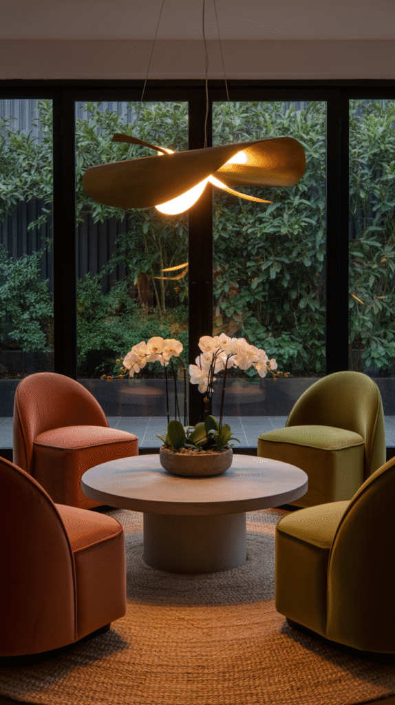 - Lamps or sconces behind for ambient lighting.