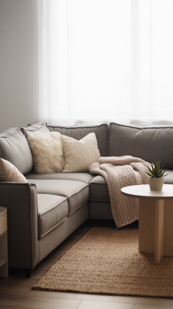 Angle the sofa facing the corner (preferably with a TV or fireplace there), and suddenly your layout feels designer-level intentional.