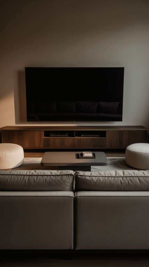 Bonus: Use a media console with hidden storage for remotes, wires, and whatever tech graveyard you’ve got going on.