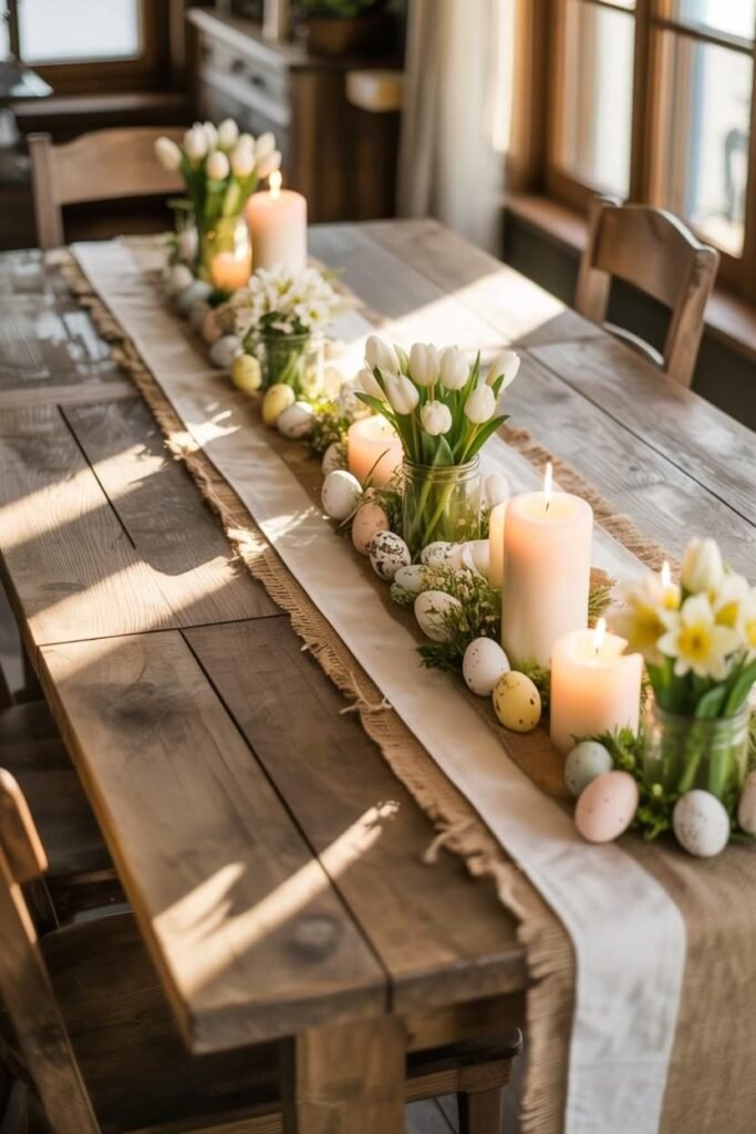 Candles elevate everything. Soft lighting instantly upgrades any Easter table setting. Skip harsh overhead lights. Use tapers or votives.