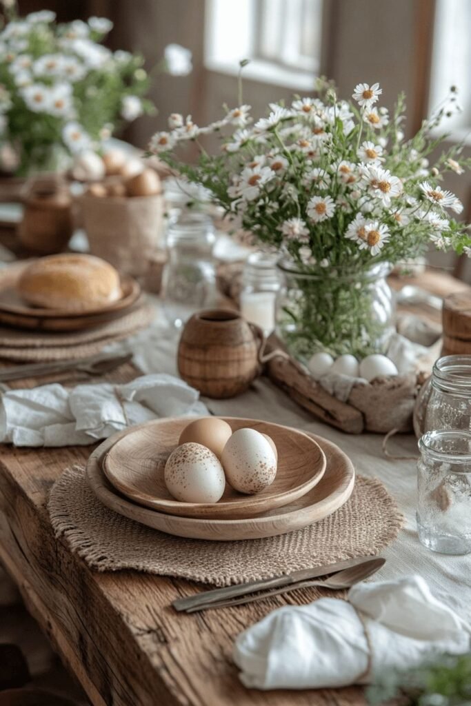 Rustic Easter table settings feel inviting, not intimidating.