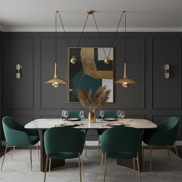 Okay, hear me out: dark colors in dining rooms aren’t depressing—they’re dramatic in all the right ways. This season, think charcoal walls, deep emeralds, and navy blues. These hues create a cozy, intimate vibe that makes every meal feel like a special occasion.