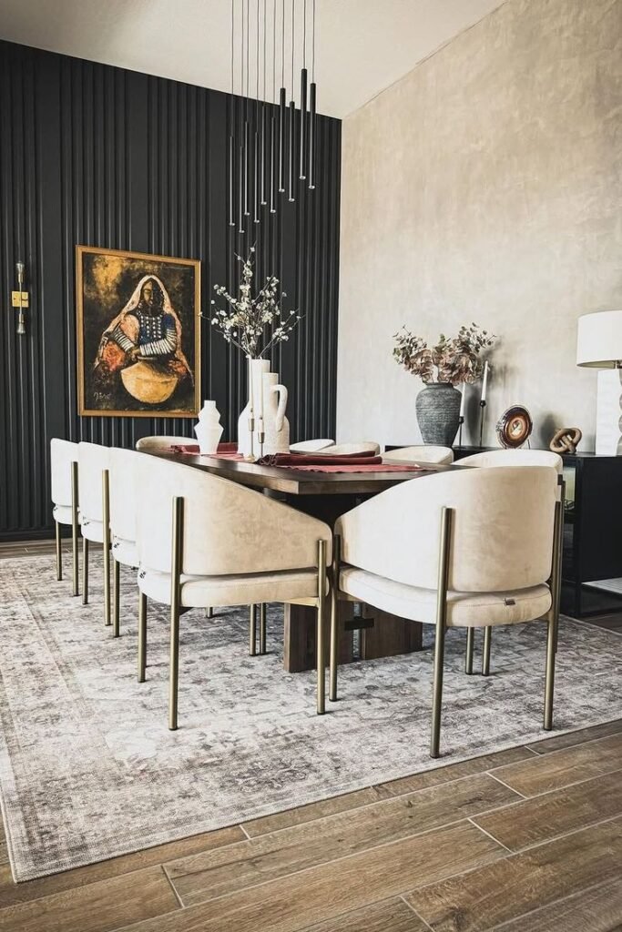 I’ve tried neutral walls, and don’t get me wrong—they’re safe. But dark walls? Instant sophistication. They also make metallics and light wood pop, giving your dining room a designer touch without needing a full renovation.