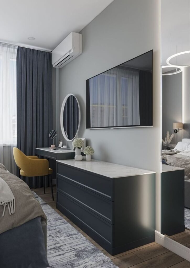This setup integrates your vanity into your bedroom design without making it obvious.