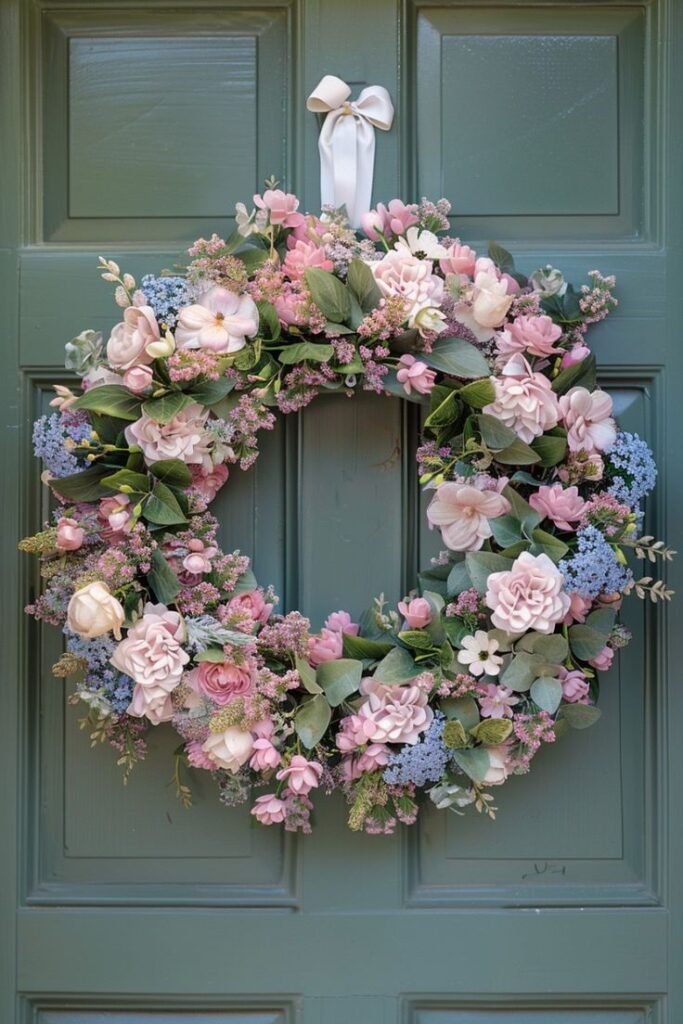 1. The Classic Pastel Floral Easter Wreath