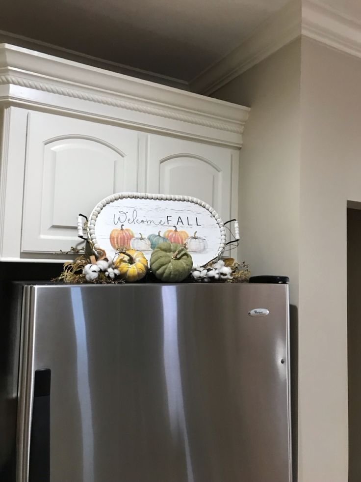 According to my experience, the top of the fridge works great for seasonal accents because they don’t get in the way.