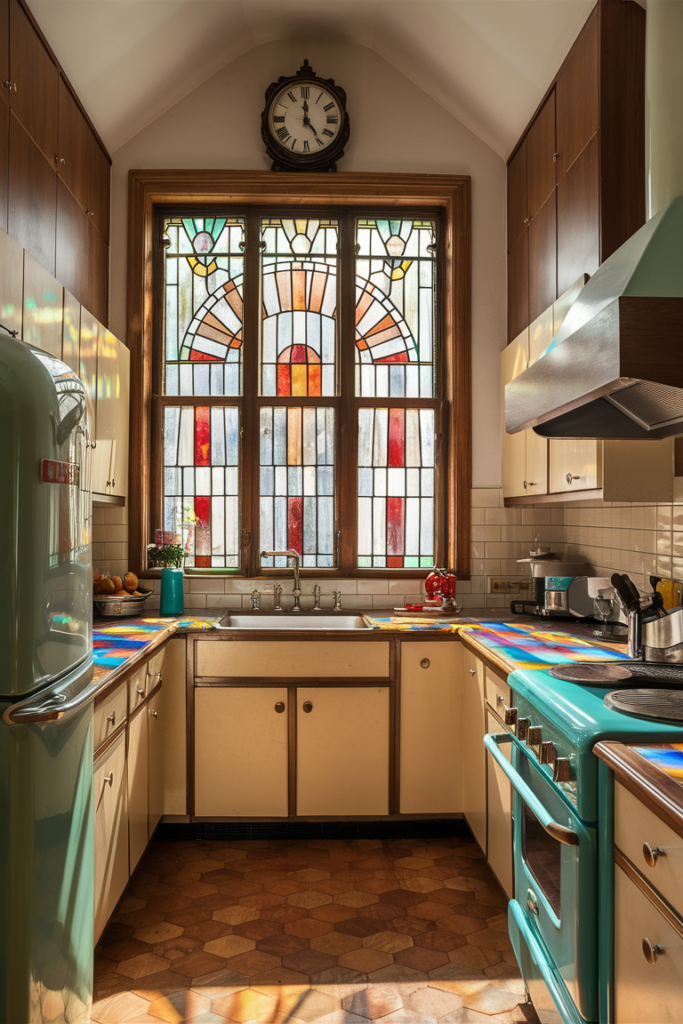 👉 Pro tip: Stained glass pairs perfectly with warm woods and classic tile backsplashes for an old-meets-new vibe.