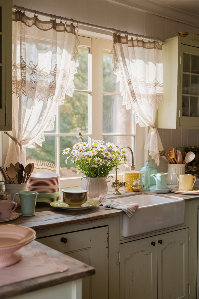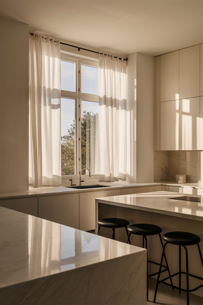 👉 Pro tip: Pair sheer curtains with natural wood or white cabinetry for major airy charm.