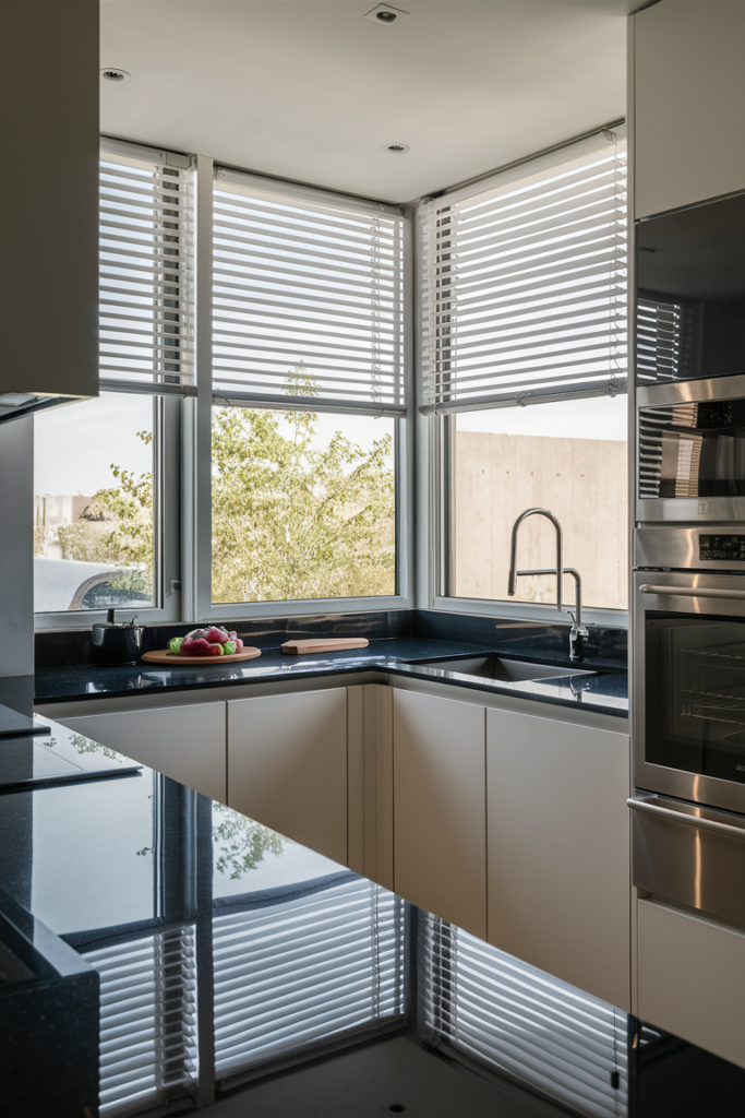 👉 Pro tip: Coordinate your blinds with your backsplash or countertop accents for a pulled-together look.