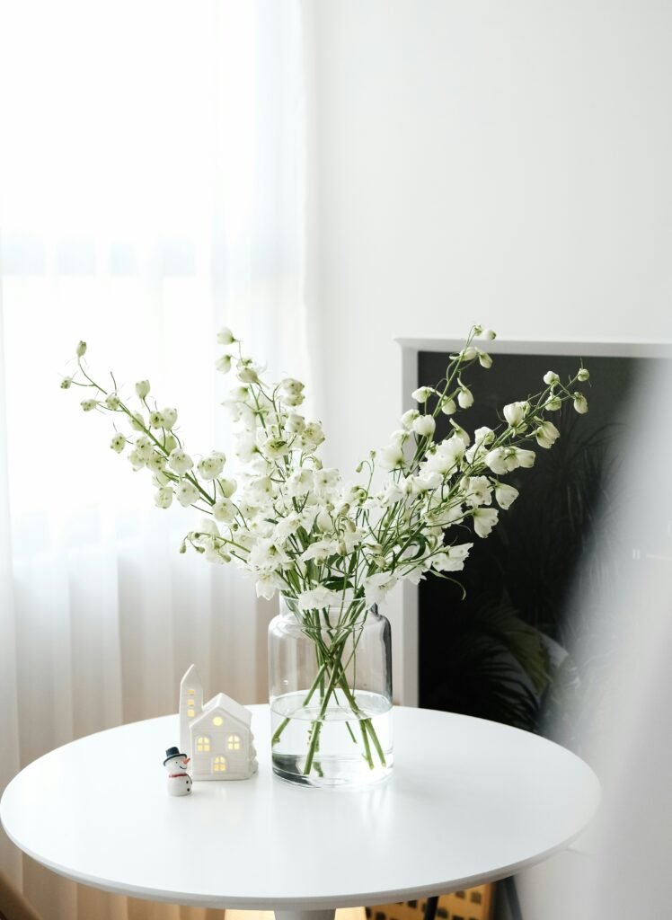 I love winter florals like white roses, hydrangeas, and dried stems. According to my experience, these look stunning in matte vases. Dried florals also last longer and need zero maintenance.