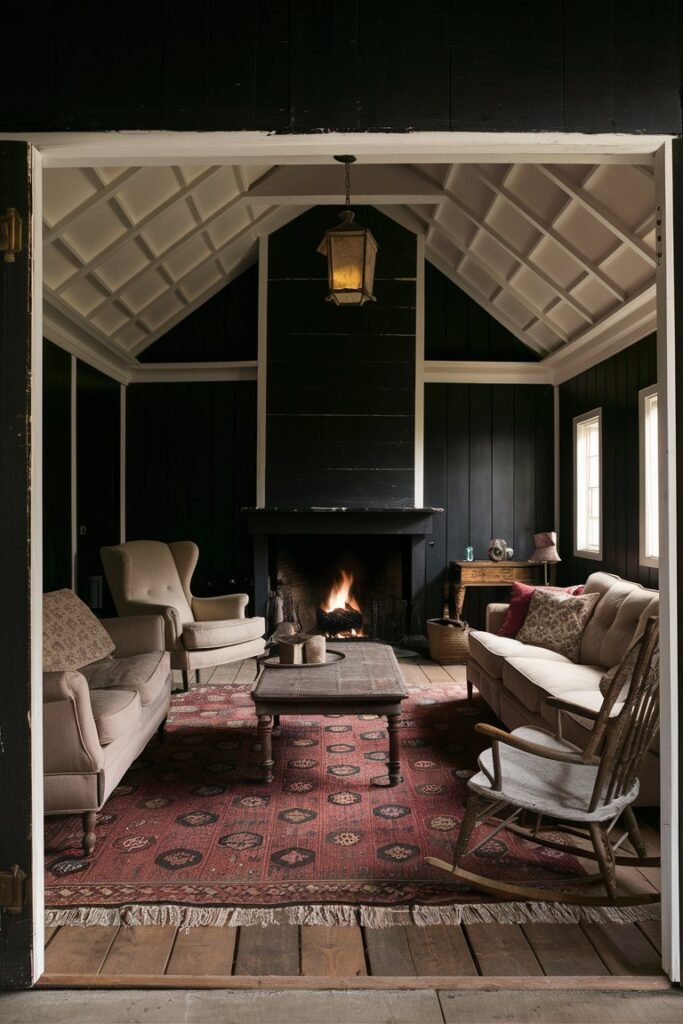Pair it all with rustic wood beams or vintage light fixtures, and suddenly your room feels like a moody farmhouse dream.