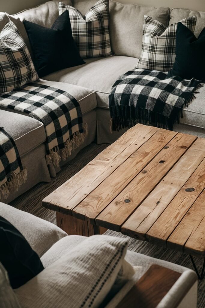 Layer in solid-colored pillows or textured throws to keep it cozy without going full checkerboard.