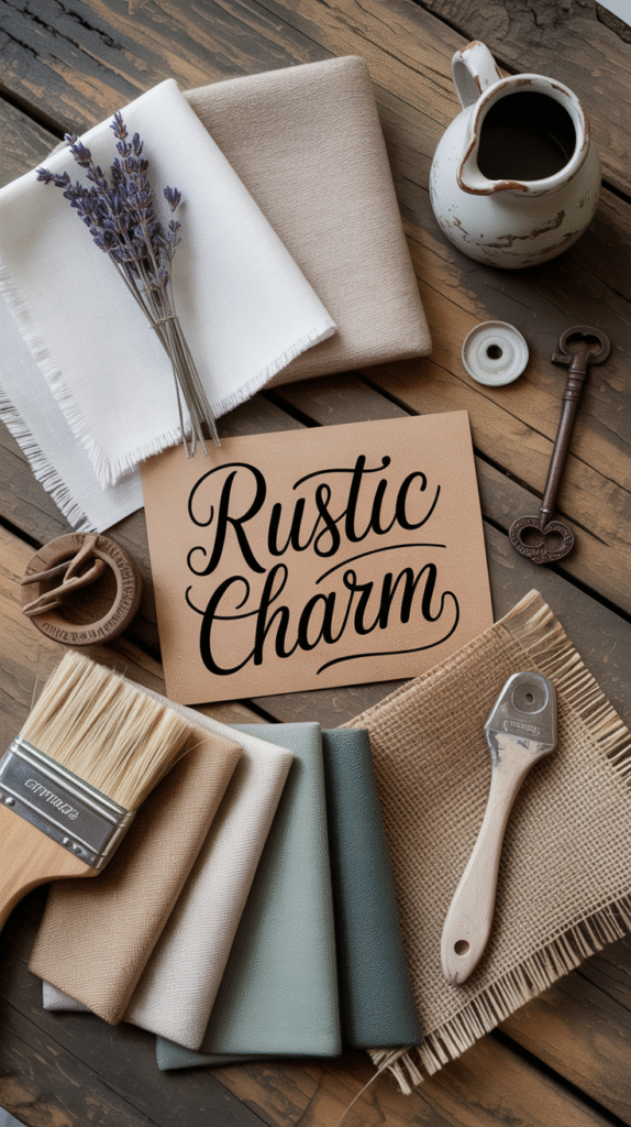 • Accents: Dusty blue, clay