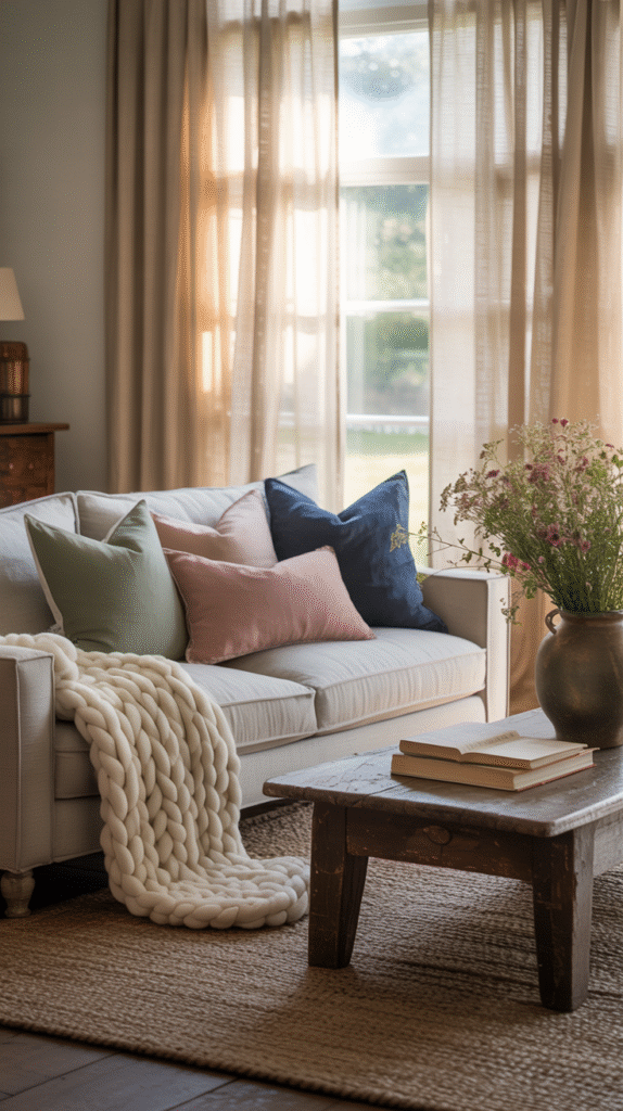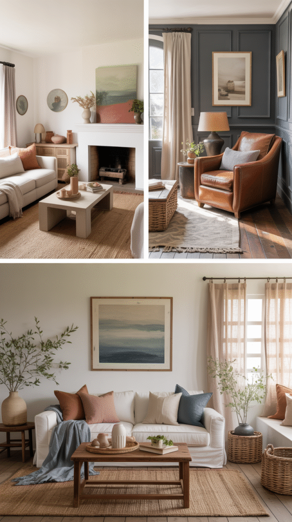 • Art and accessories that echo the palette without matching too perfectly (we’re not building a hotel lobby here)