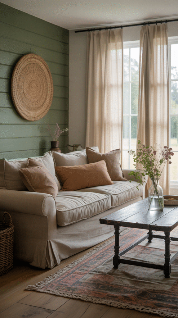 This isn’t a 90s Nickelodeon reboot. Farmhouse living room colors should feel muted, aged, and a bit soft around the edges. Think “lived in,” not “laser tag.”