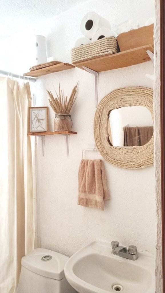 Woven decor adds softness. I like it especially in modern bathrooms that feel too cold.