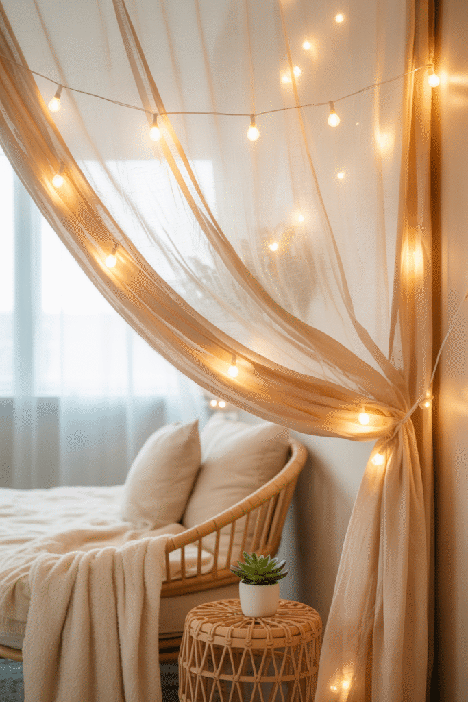 • Curtain string lights – dreamy AF behind a sheer curtain