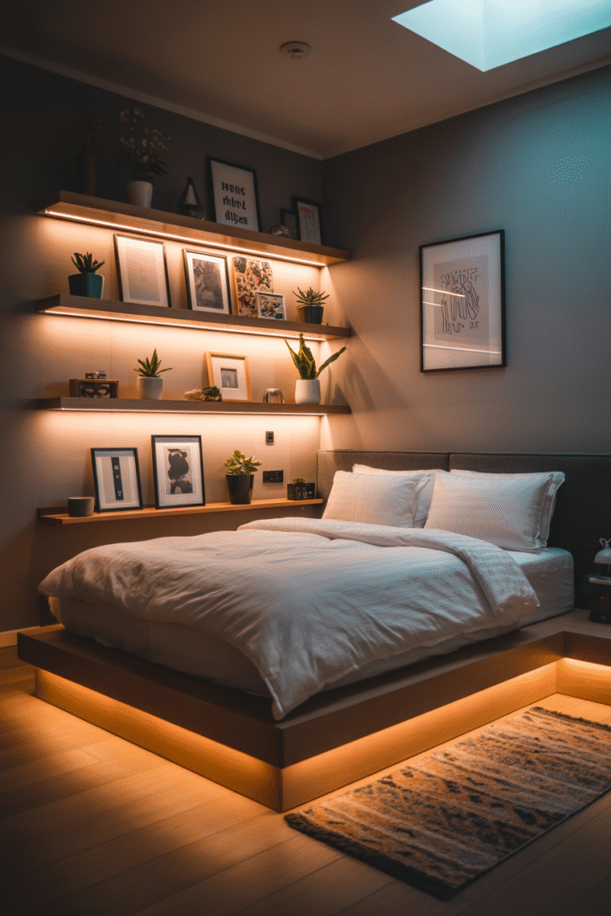 Use LED strips—they’re cheap, easy to install, and make your room look way fancier than it really is. Fake it till you make it, right?