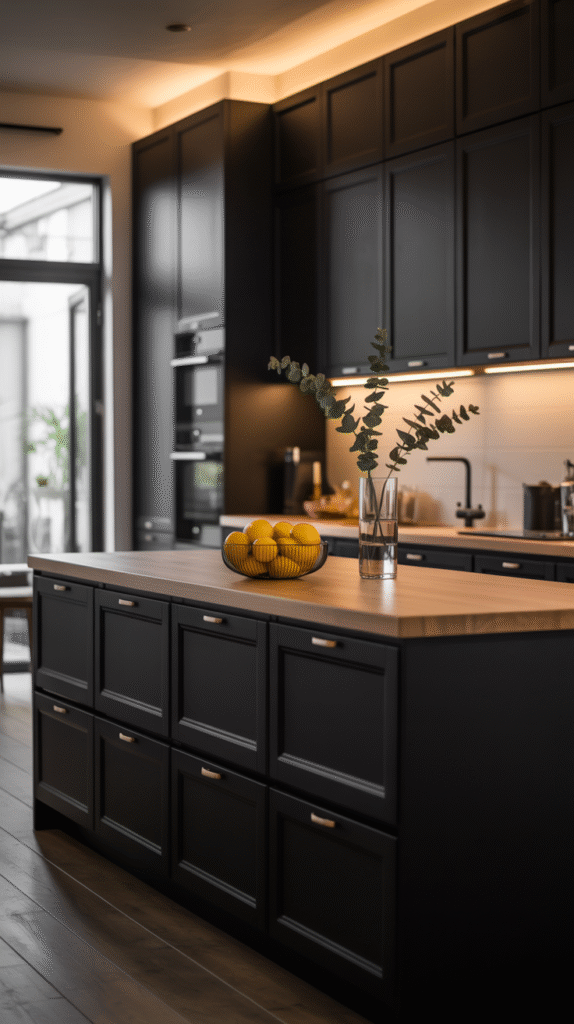 Go for matte black cabinets if you want a modern, low-maintenance look. Glossy black is beautiful but shows fingerprints like nobody’s business. IMO, matte black is the way to go unless you enjoy cleaning… which, let’s be honest, who really does? 😏