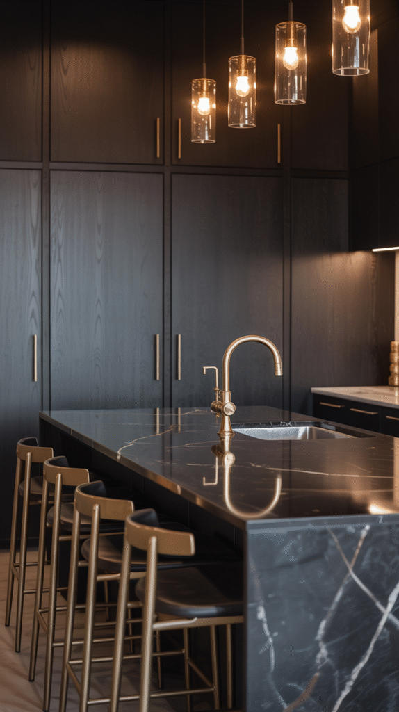 Let’s kick things off with the obvious hero—black kitchen cabinets. They instantly make a statement.