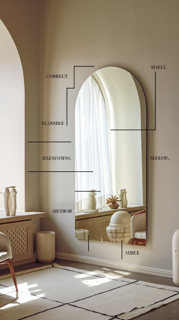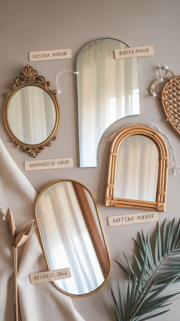 • Scandi/boho → Arched wood or rattan-framed mirrors