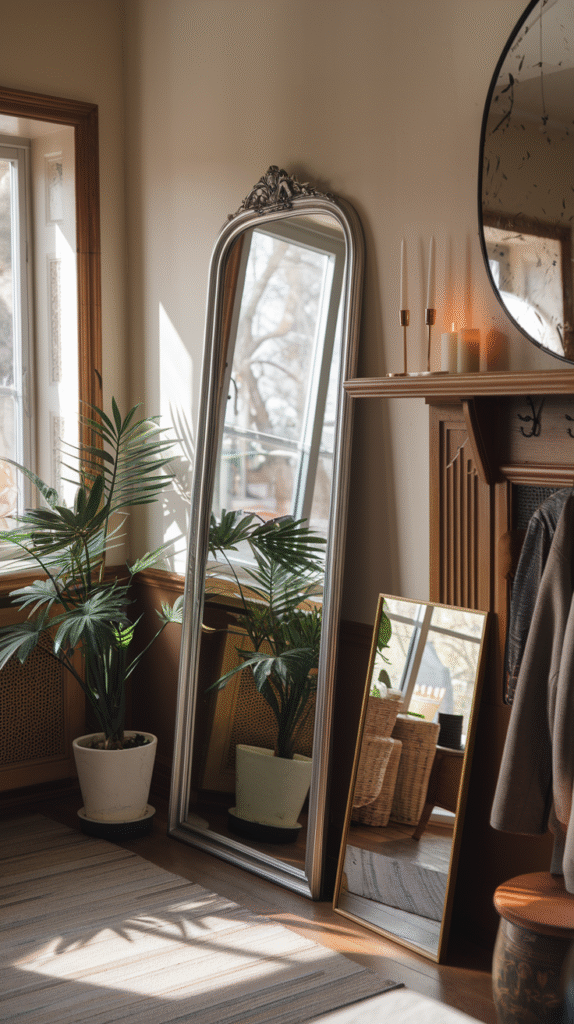 • Across from a window → Mirrors bounce natural light like pros.