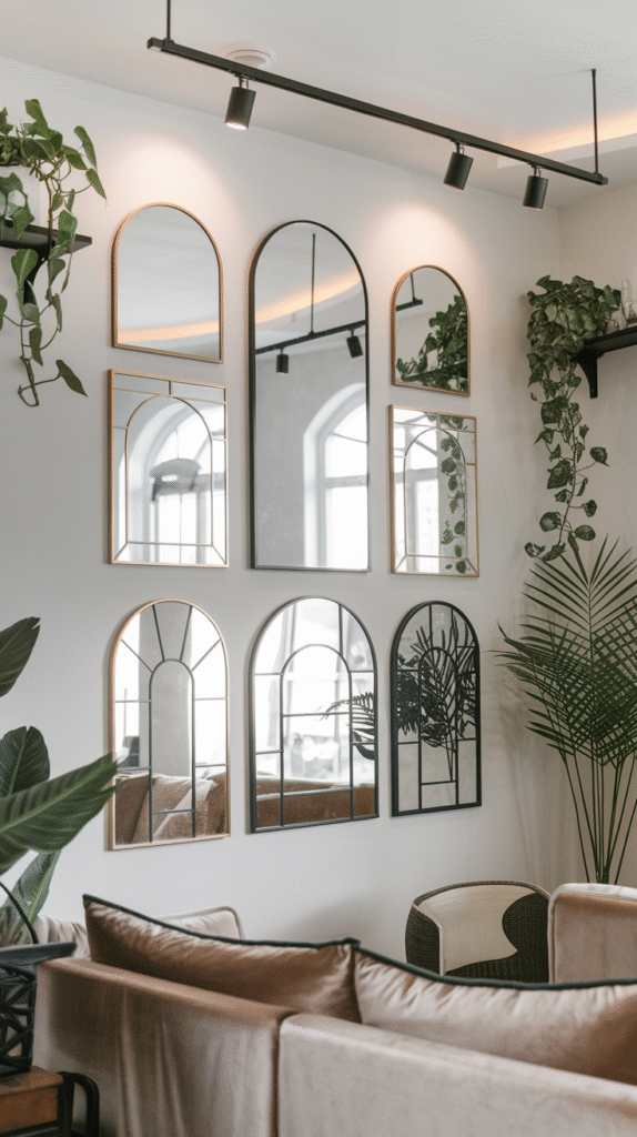 • Large walls → Consider multiple mirrors or oversized pieces that create a focal point.