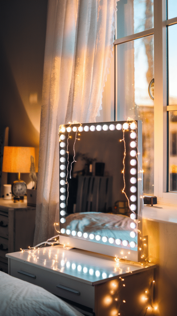 Ever seen those mirrors with the glow behind them? Yeah, they’re a thing—and they look expensive without always being expensive. Plus, they’re clutch for makeup or selfies. Just sayin’.