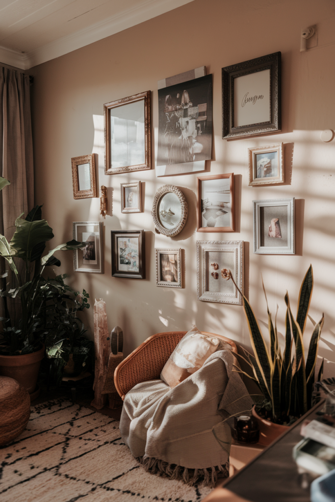 Nothing says DIY home aesthetics like a gallery wall that’s basically your personality in frames. I once threw together a mishmash of thrift store frames, and it’s still my favorite corner of the house.