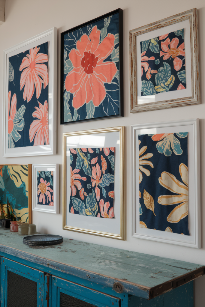 Fabric scraps + cheap frames = instant DIY home aesthetics. I used leftover quilt squares, and now my wall looks like a boutique.
