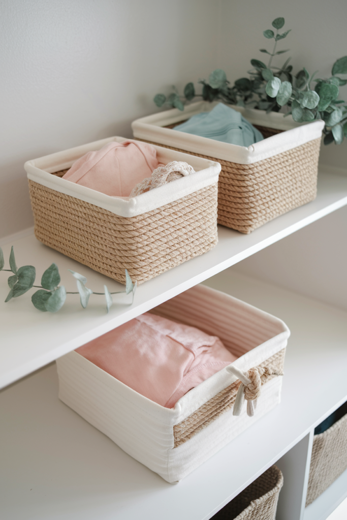 Storage doesn’t have to be boring. Grab some cheap baskets and wrap them with rope or twine for that boho DIY home aesthetics glow. I did this for my laundry nook, and suddenly, socks felt fancy.