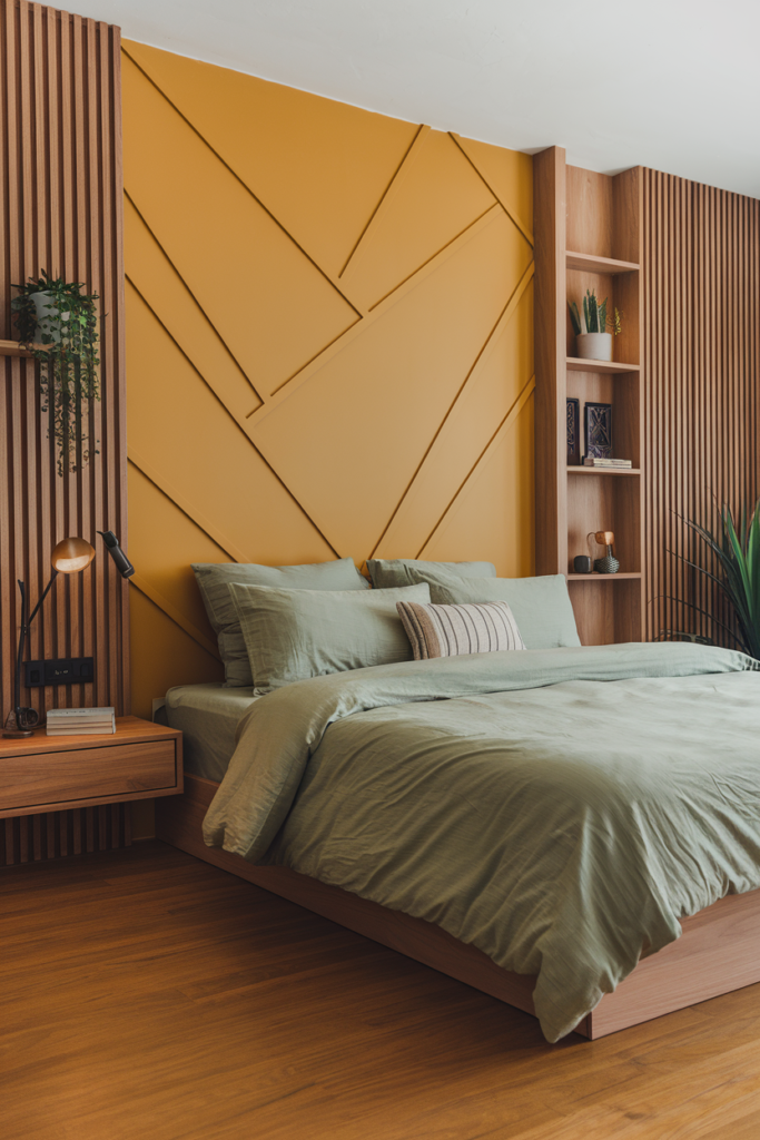 - Geometric shapes: Use painter’s tape for clean lines. Triangles or arches are foolproof.