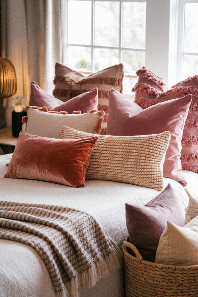 - Shapes – Square for basics, lumbar for layering, round for playful contrast.