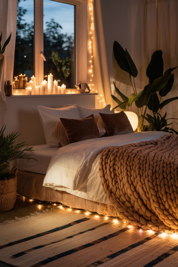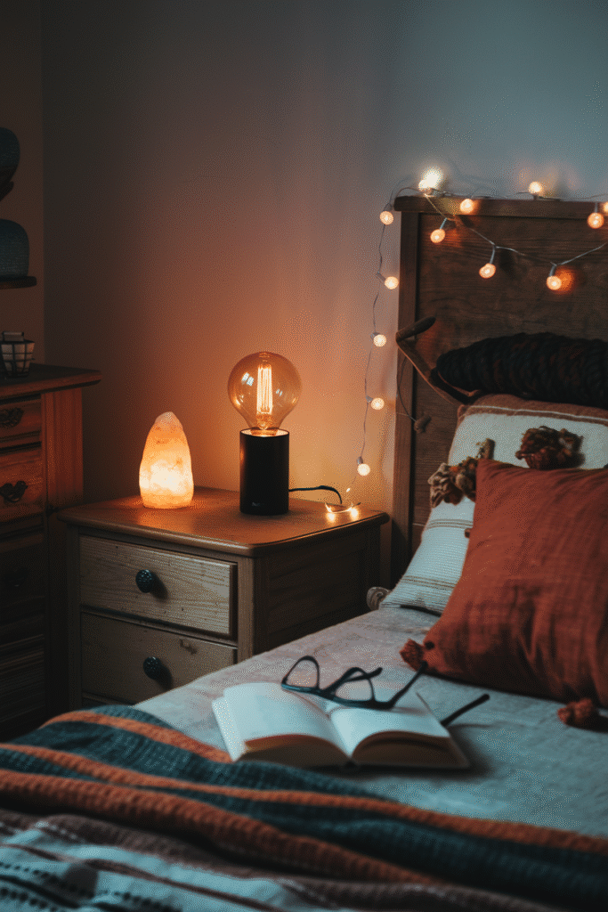 - String lights – Cute, cozy, and renter-friendly. Drape them around your headboard or across a window for a subtle sparkle.
