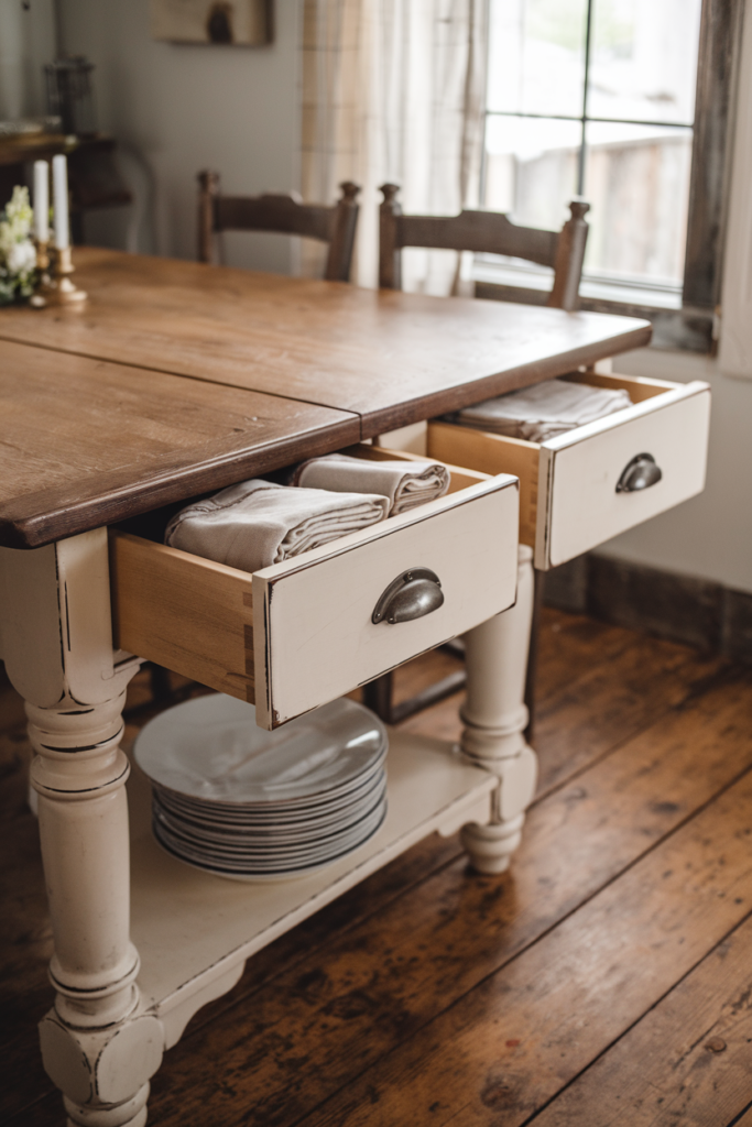Pretty and practical, this farmhouse-style dining table extends and offers optional drawers. The distressed finish? Pure charm, and the storage is a game-changer for busy American households.