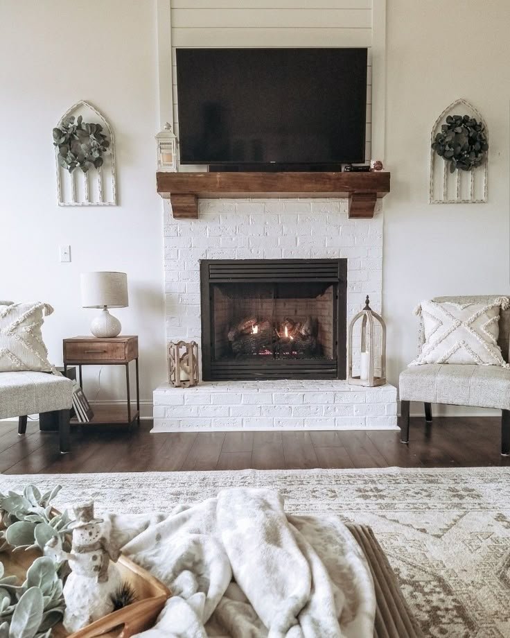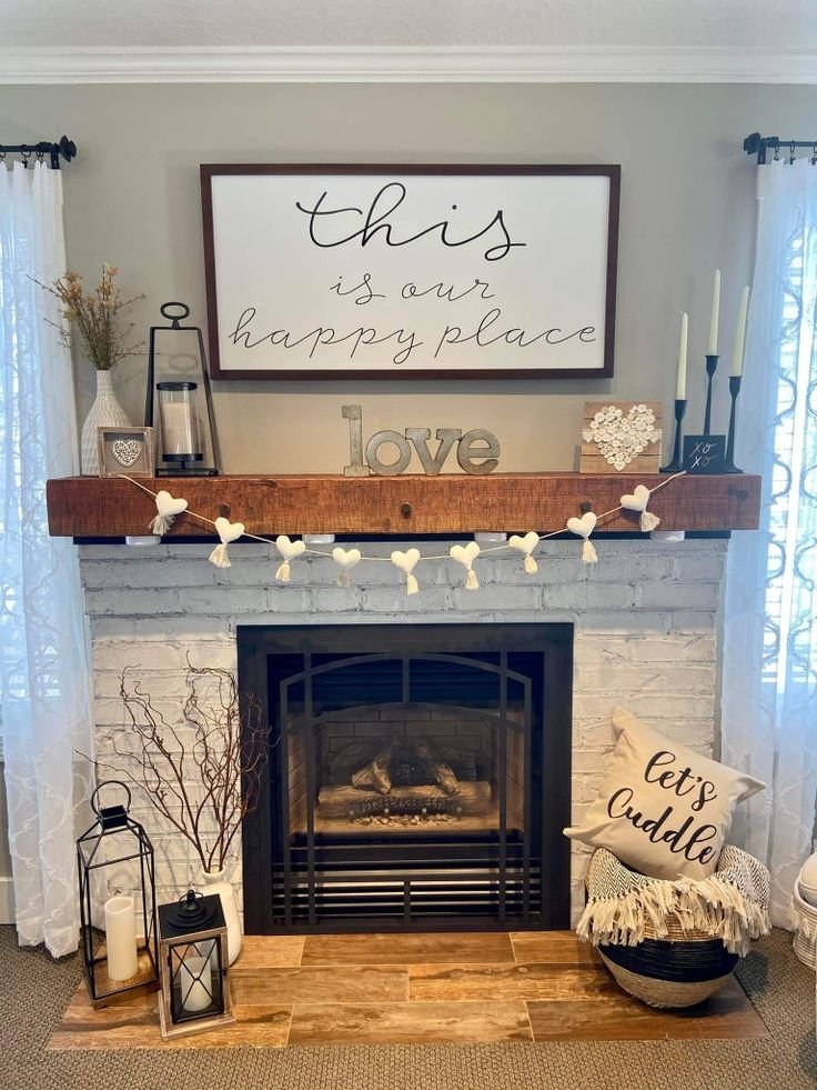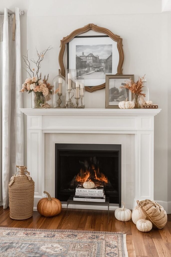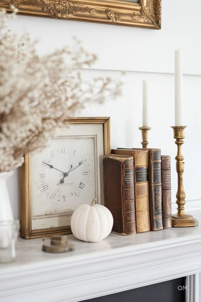 This fireplace mantel decor idea works beautifully in family spaces and reading rooms.