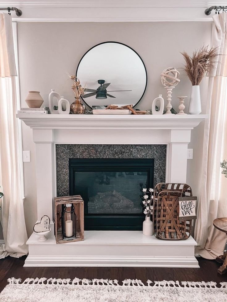 Neutral fireplace mantel decor ideas: